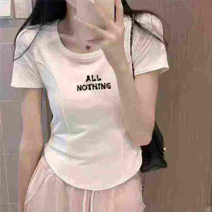 冰丝螺纹短袖t恤女夏修身显瘦甜辣小上衣设计感小众202...
