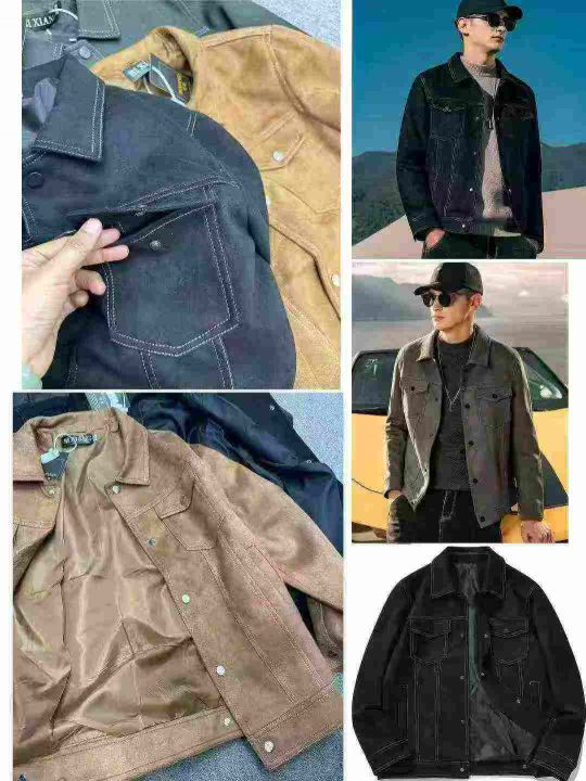男士新款仿麂皮绒夹克潮流帅气休闲翻领工装外套上衣,独立包装原吊牌,整款四色,码数M-3XL,数量1600件,分货加1,货号0912#37