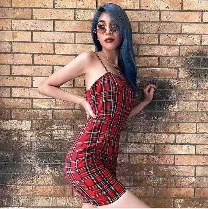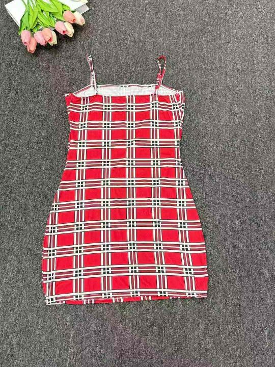 欧美风新款复古红格子高腰修身吊带裙短裙连衣裙,独立包装,250件,S-XL,全清5.5