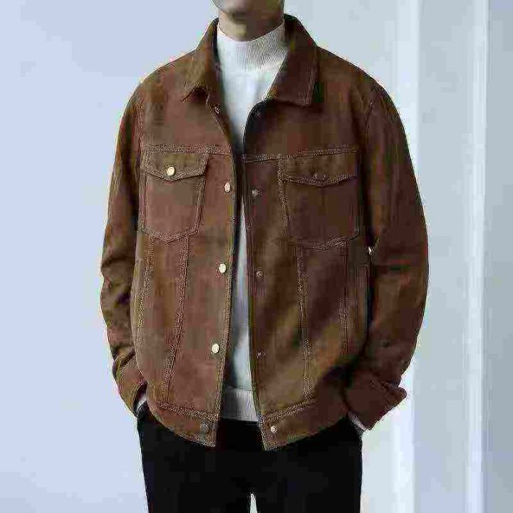 全清价24.8元男士新款仿麂皮绒夹克潮流帅气休闲翻领工...