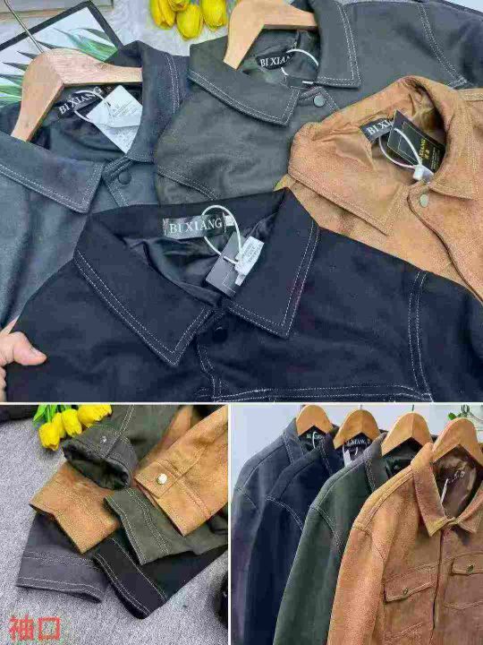 男士新款仿麂皮绒夹克潮流帅气休闲翻领工装外套上衣,独立包装原吊牌,整款四色,码数M-3XL,数量1600件,分货加1,货号0912#37