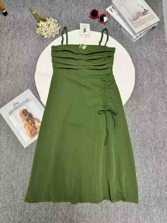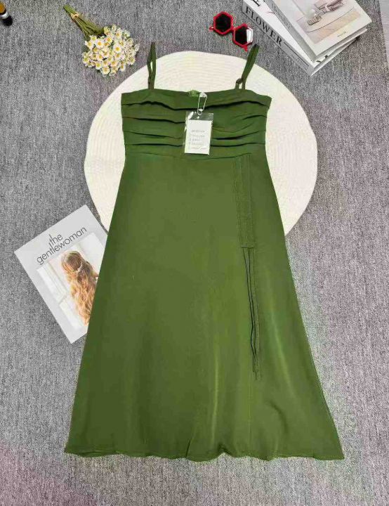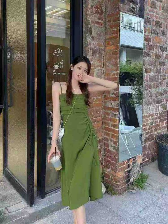 新款夏显瘦气质过膝法式复古裙女抽褶裹胸修身性感绿色吊带连衣裙,单款单色,品质好,有独立包装带吊牌,数量200件左右,码数S-XL,全清8.8,分货+1