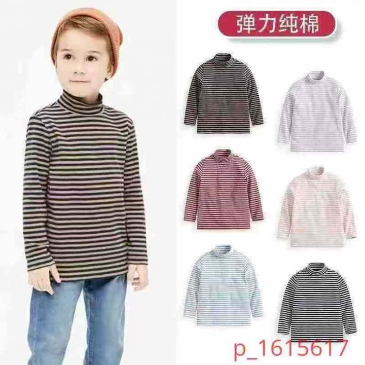 亏本清4.8 不分货500件左右男女童半高领打底衫条纹长袖T恤秋冬款儿童装宝...