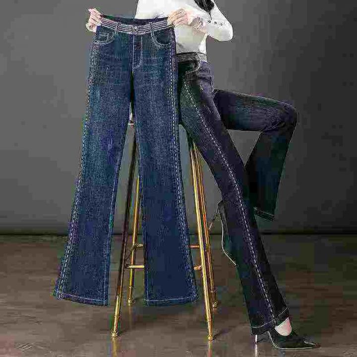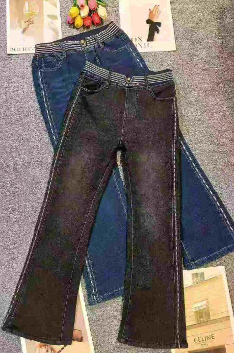 高腰弹力显瘦微喇叭牛仔长裤,[爱心]40件左右,烟灰色为主,码数28-34,穿80-140斤,工厂原包原吊无瑕疵