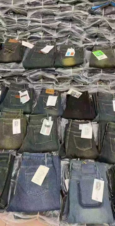 基本以深色为主:阔腿、烟管裤、老爹、微辣裤,都有,质量非常好,最新款的牛仔尾货,混批100条一份29.9