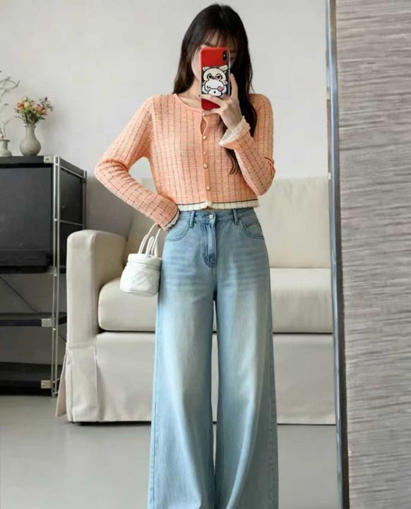 天猫下架一批高品质网红靓妹女装洗水棉小整杂款牛仔阔腿直筒烟管紧身牛仔裤...