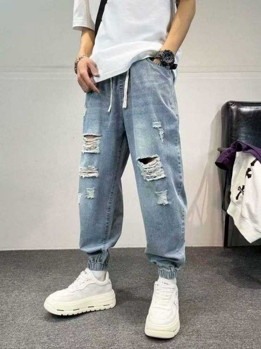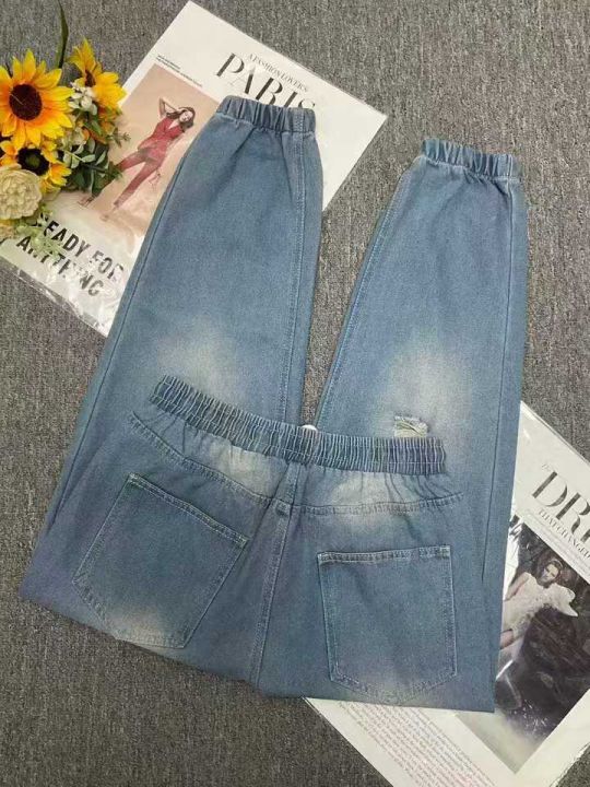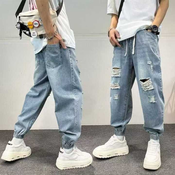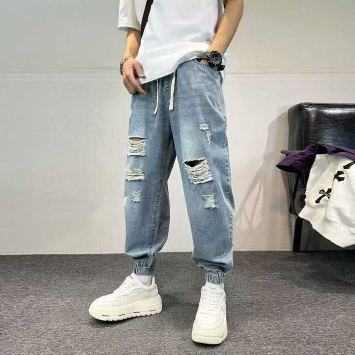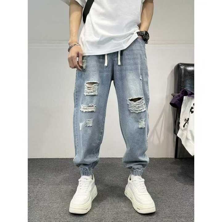 秋季新品男女同款洗水棉松紧腰束脚牛仔裤,独立包装,...