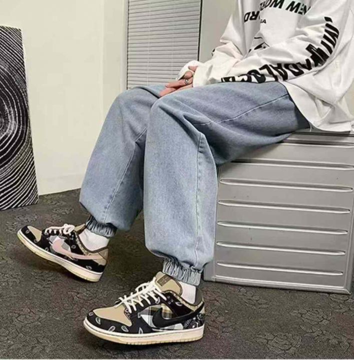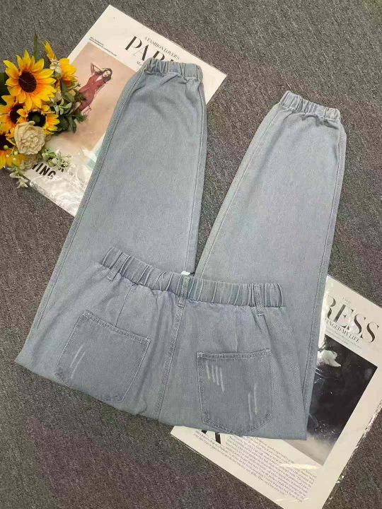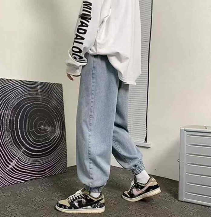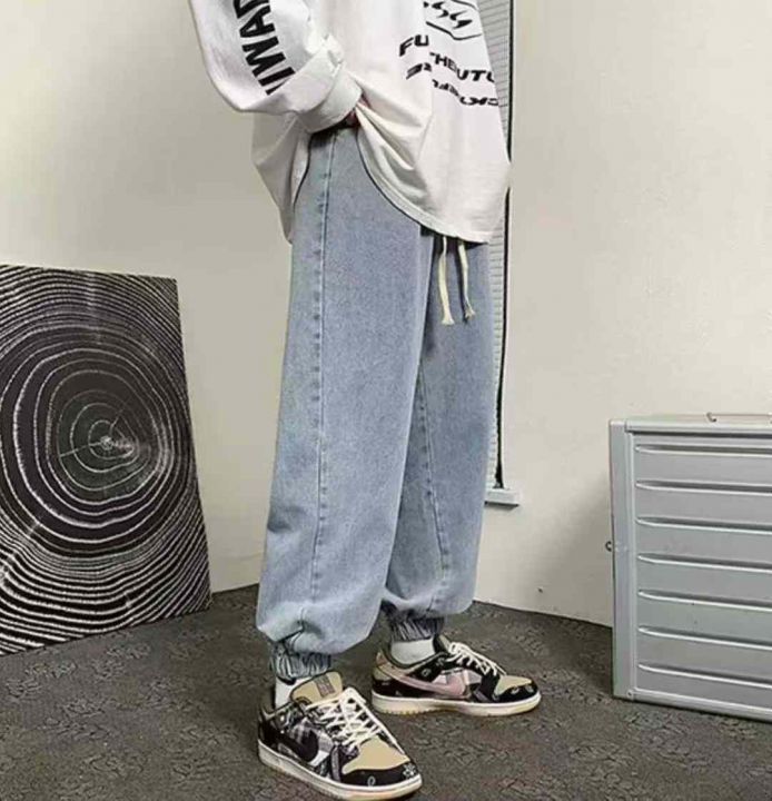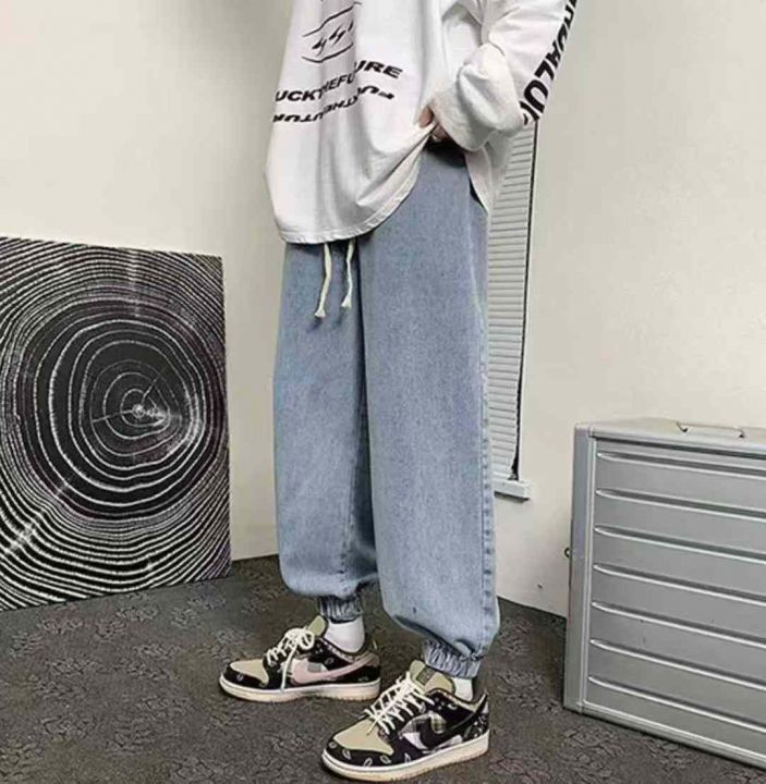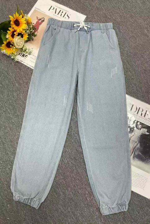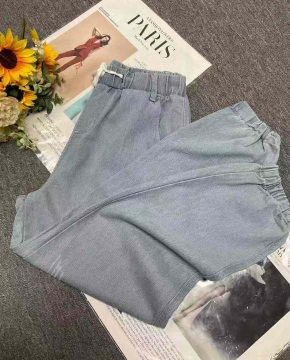 秋季新品男女同款洗水棉松紧腰束脚牛仔裤,独立包装,...