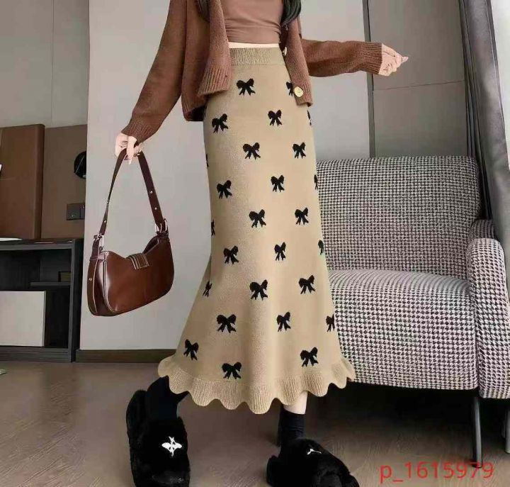 秋冬新款温柔荷叶边软糯甜美高腰显瘦垂感针织毛衣半身...