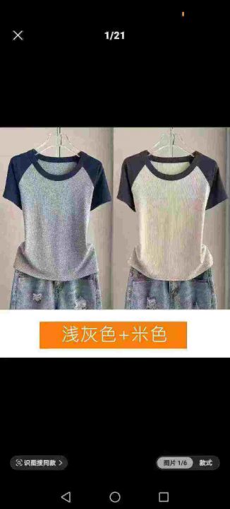 5.9全清,800件 分货+1,短袖正肩白色插肩撞色t恤 辣妹修身显瘦拼接圆领百搭针织毛衣 整款2色 品质好 独立包装。
