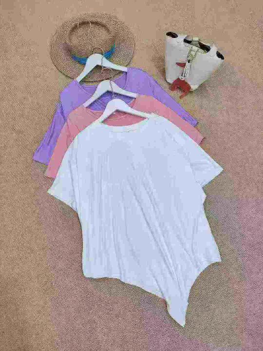 [月亮]:不规则抽绳收腰设计休闲宽松T恤