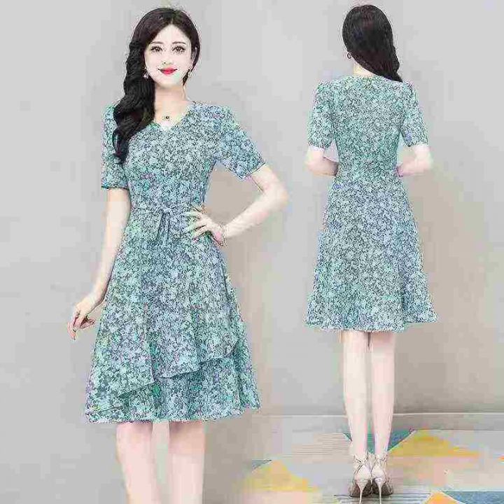 气质连衣裙女2025年新款夏季洋气碎花减龄时尚雪纺短款裙子300件,单款两色,尺码S~4XL.独立包装带吊牌,货品新净,全清福利价12.8元分货➕1