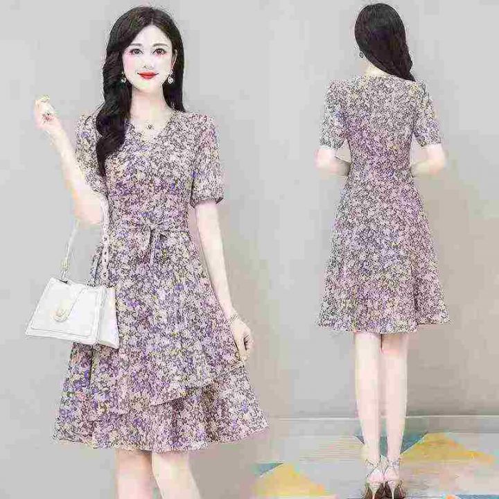 气质连衣裙女2025年新款夏季洋气碎花减龄时尚雪纺短款裙子300件,单款两色,尺码S~4XL.独立包装带吊牌,货品新净,全清福利价12.8元分货➕1