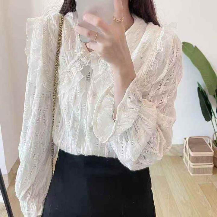 欧货大码女装,法式大翻领洋气甜美设计感蕾丝衫,150...