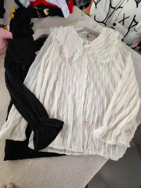 欧货大码女装,法式大翻领洋气甜美设计感蕾丝衫,150件,黑白色,180-210码