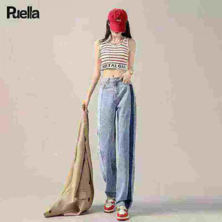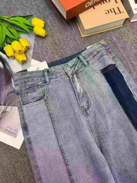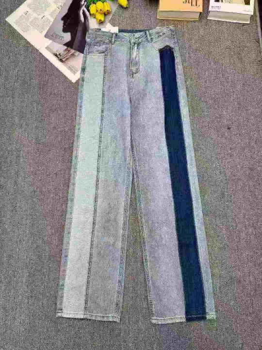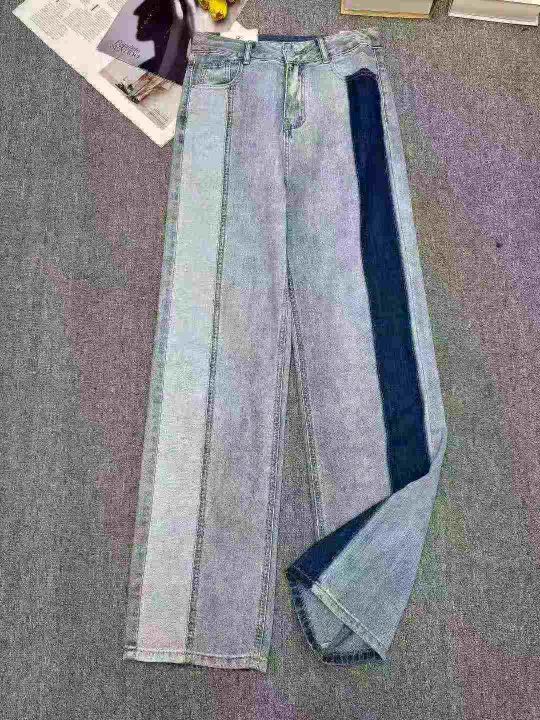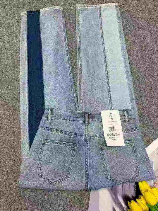 捡漏110条拼色宽松垂感阔腿裤长款直筒休闲牛仔裤,独立包装,码数XS-2XL,M码裤长107厘米,面料质量,可入实体店(货号0903#9)