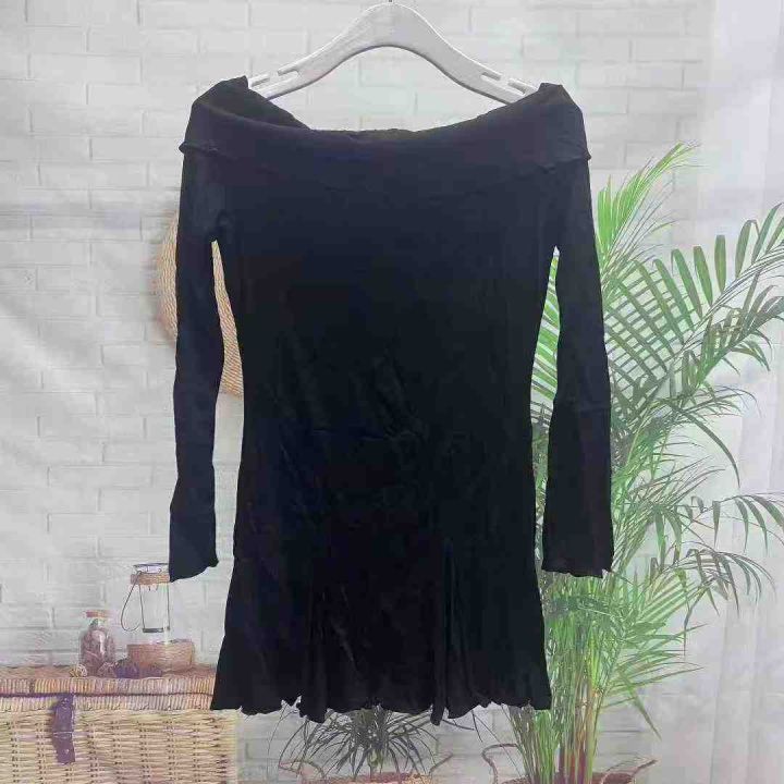 6.5元全清,辣妹风一字领交叉长袖连衣裙女秋季新款黑色修身显瘦时尚上衣短裙,独立包装,均码L,175件左右