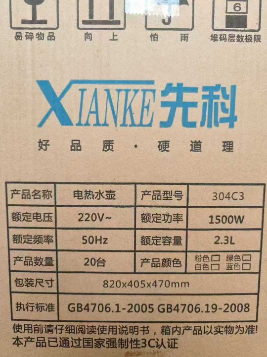 2.3L先科包胶电热水壶220个一口价13.5元...