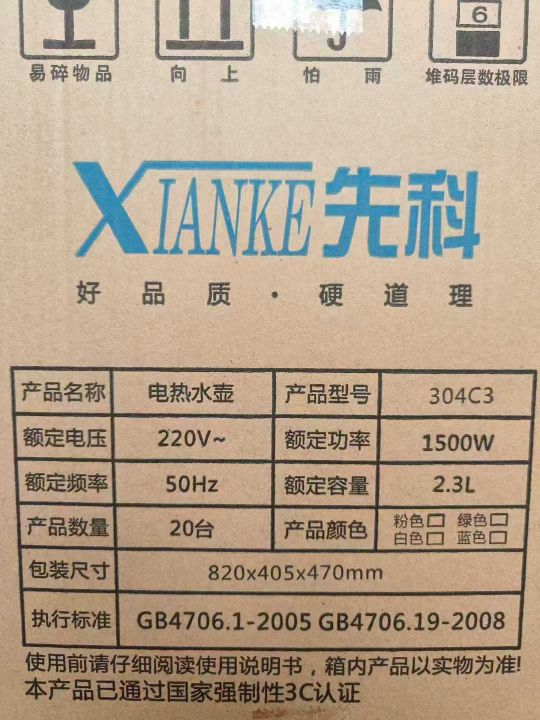 2.3L先科包胶电热水壶220个一口价13.5元...
