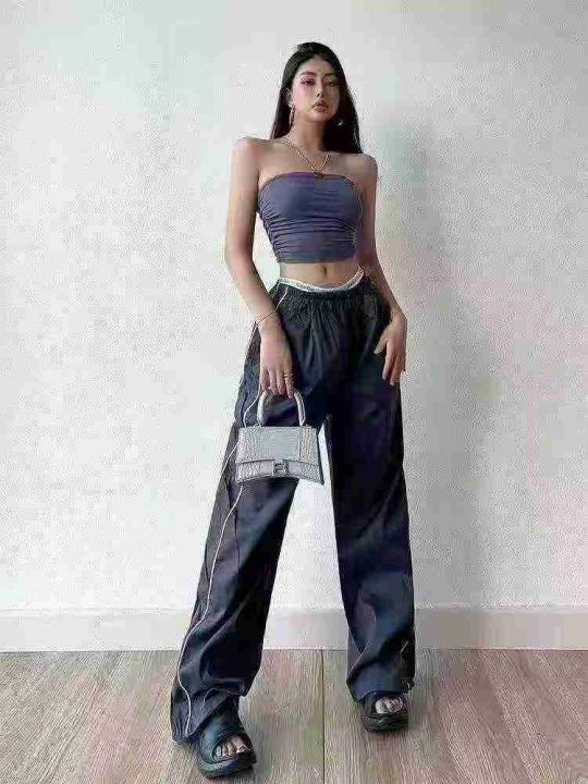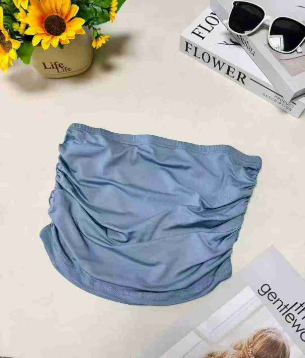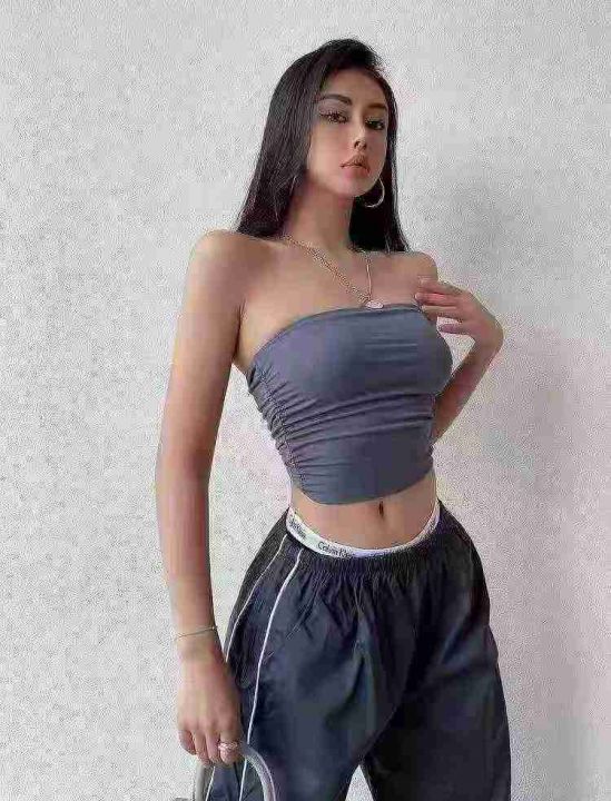 内搭性感平口无肩带紧身弹力打底褶皱短款露脐抹胸背心...