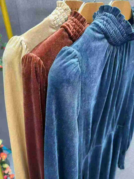 ️全清7.9 高级感法式气质金丝绒连衣裙,纯色百搭中长款连衣裙,全部独立包装,棕色和蓝色为主,一共38件