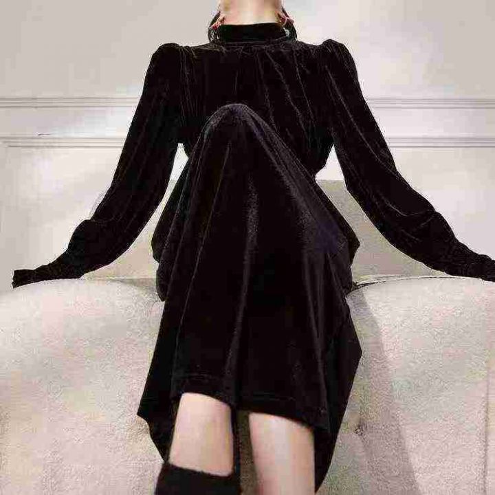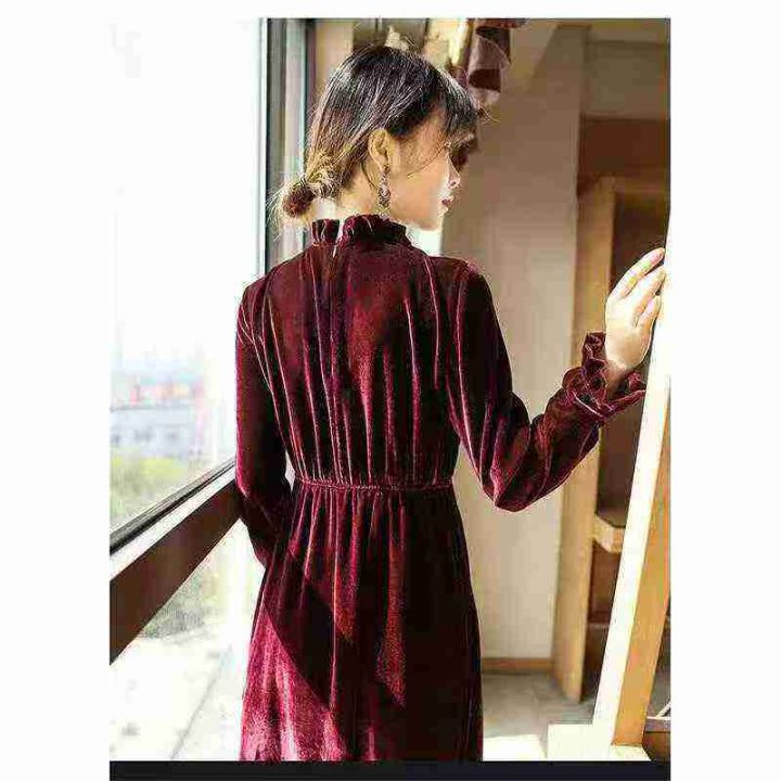 ️全清7.9 高级感法式气质金丝绒连衣裙,纯色百搭中...