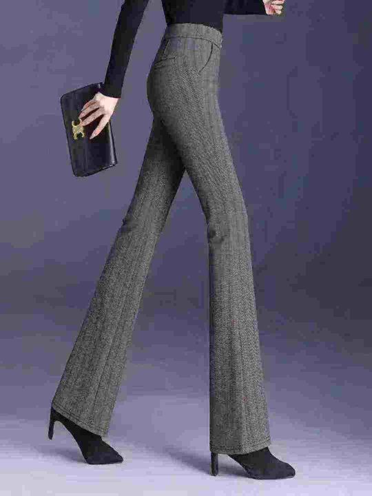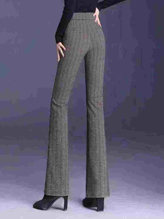 ️全清6.9 秋冬加绒女装条纹长裤,高腰显瘦喇叭裤,...