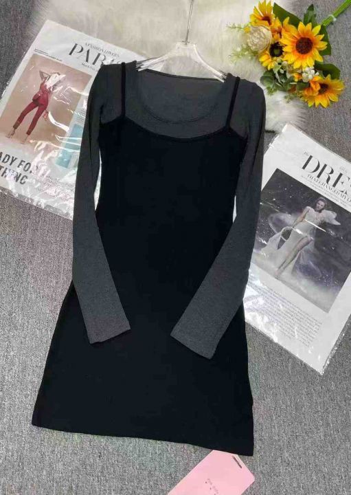 秋冬新款假两件高品质辣妹弹力修身显瘦针织连衣裙,独立包装,均码面料软糯舒适弹力大,139件,全清7.9元超低价秒杀!
