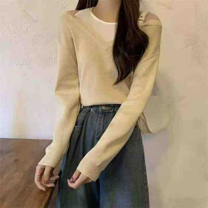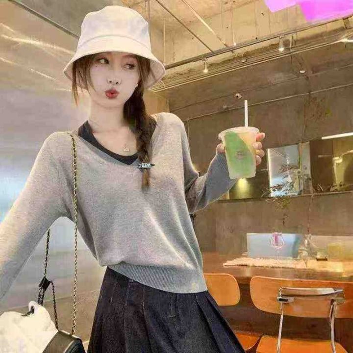 秋冬新款小众设计感假两件长袖内搭外穿针织套头毛衣,...