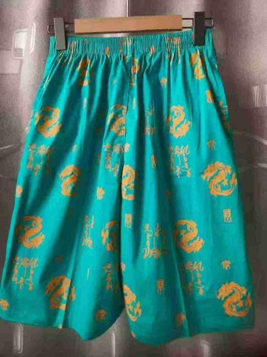 男中国风花外穿宽松夏季潮流纯棉5分中裤,花型多,均码独立包装,1200件左右,全清5.8块