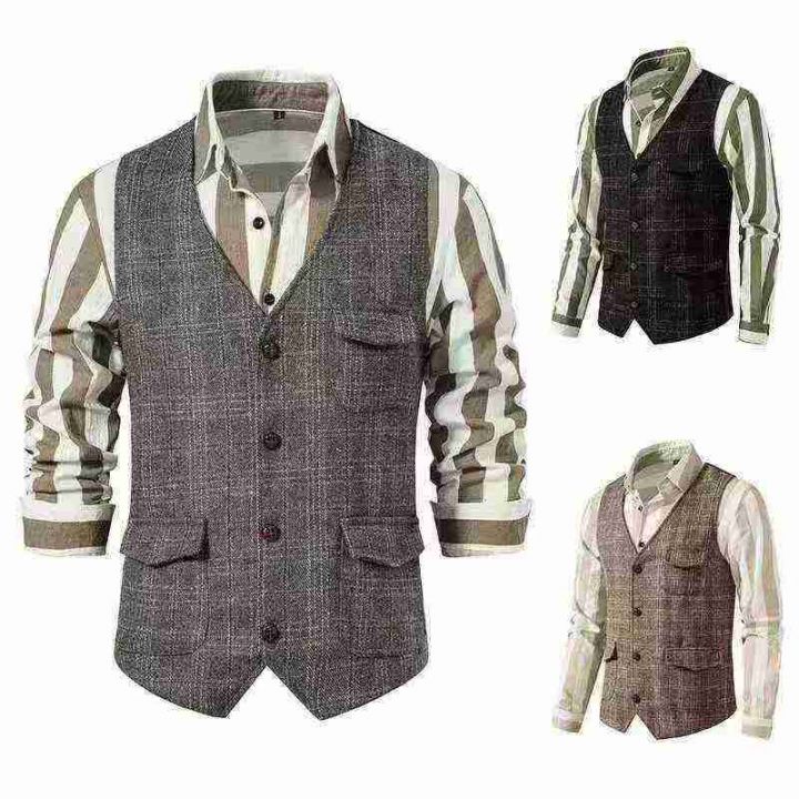 英伦复古休闲格子马甲男士时尚外穿无袖坎肩马夹背心,...