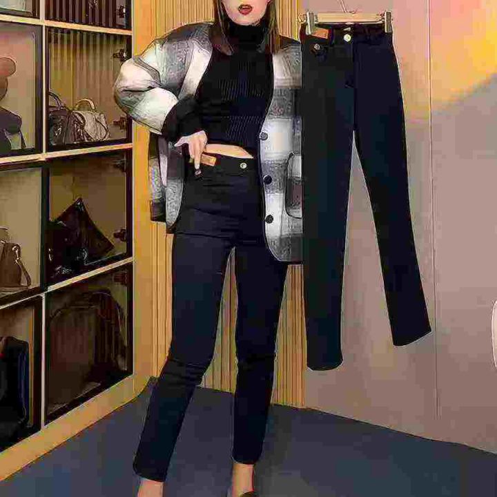 纯色休闲显瘦高腰弹力加绒烟管长裤,[爱心]35件左右,码数26-33,工厂原包原吊无瑕疵
