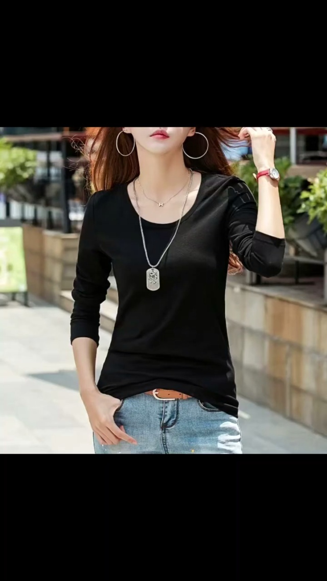 5.99清1200件左右女装长袖修身款,拉架棉,有圆领有V领,整款,一款多色...