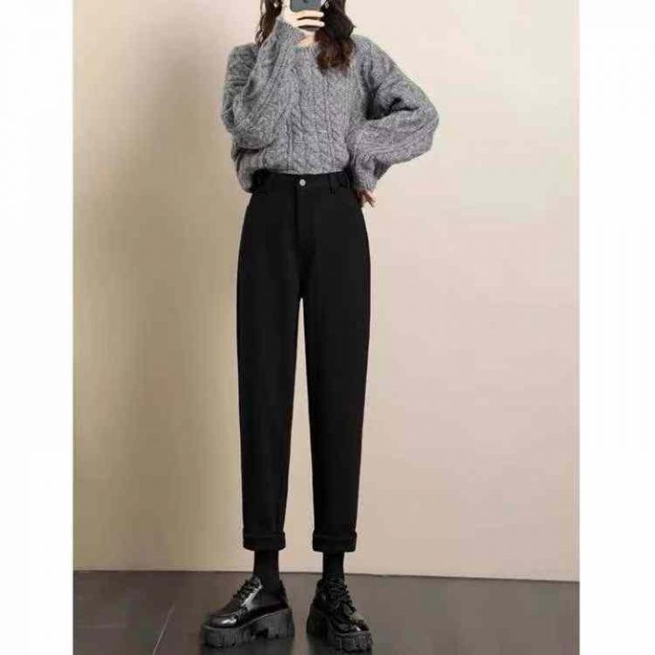 秋冬小脚毛呢裤设计烟管女磨毛英伦高腰显瘦休闲西装裤,独立包装,S,M,L...