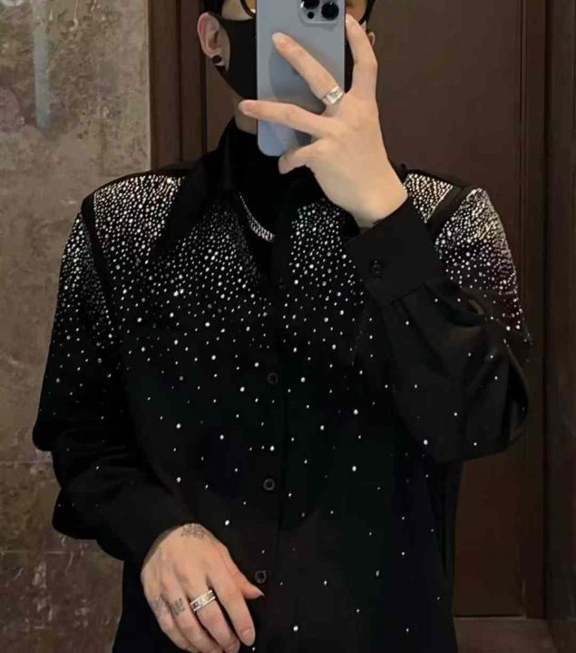 350件[红包]高级感春夏季新款时尚潮流,男士长袖衬衫➕重工钉钻,图片小整款,独立包装有吊牌,码数M-3XL全清 5.9,分货随机配货加一元