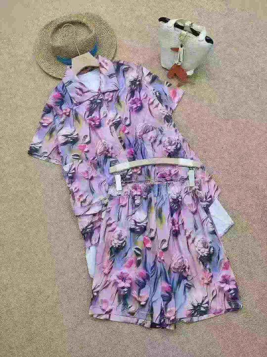 [月亮]:时尚宽松纽扣衬衣短裤两件套套装