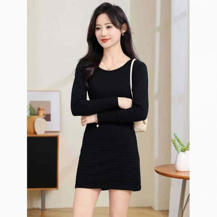 秋冬新款加厚高弹力女装圆领包芯纱套头毛衣连衣裙,独立包装,均码面料软糯...