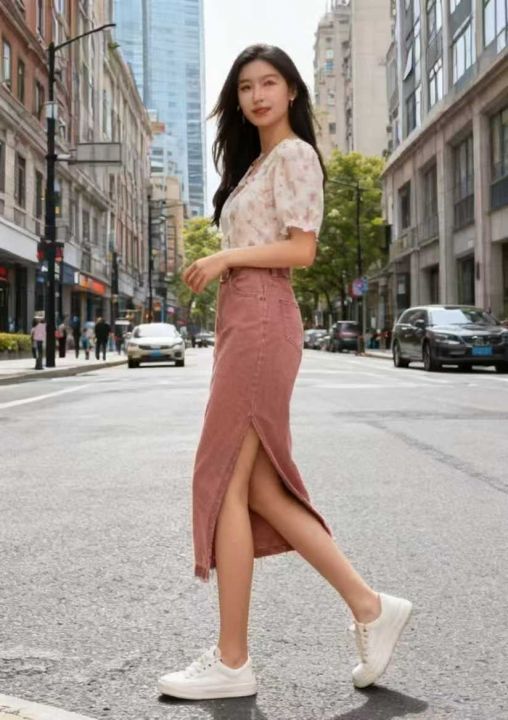早秋新款洗水棉高腰宽松牛仔半身长裙,独立包装带腰卡...