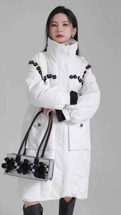 立体花朵灯笼袖90绒仙女长款羽绒服