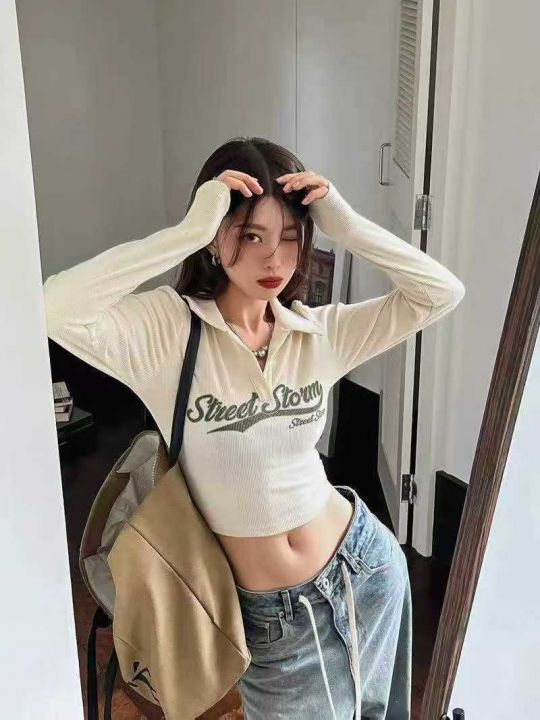 复古美式辣妹上衣296件,清5.9,面料柔软,高弹力,Polo领,图案印花,码数...