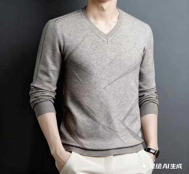品牌原单男士加绒加厚V领宽松百搭商务套头毛衣,独立...