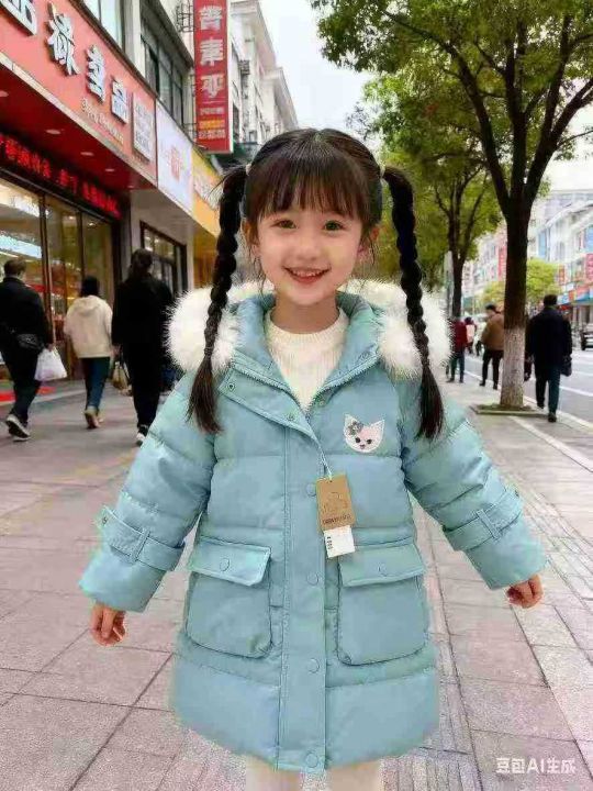 (猫头绣花)单款两色,90—140码,中间码多,含板总数150件左右 ,全部独立包装➕吊牌,商场下架品质,超性价比,厚实连帽带毛领