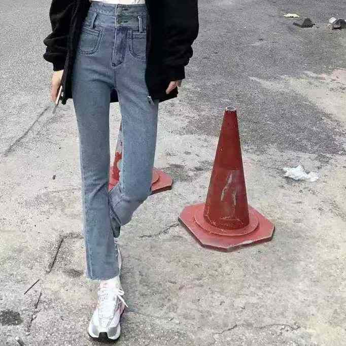 早秋季新品高弹力女装洗水棉毛边微喇叭牛仔裤,独立包装带腰卡,码数S-2XL...