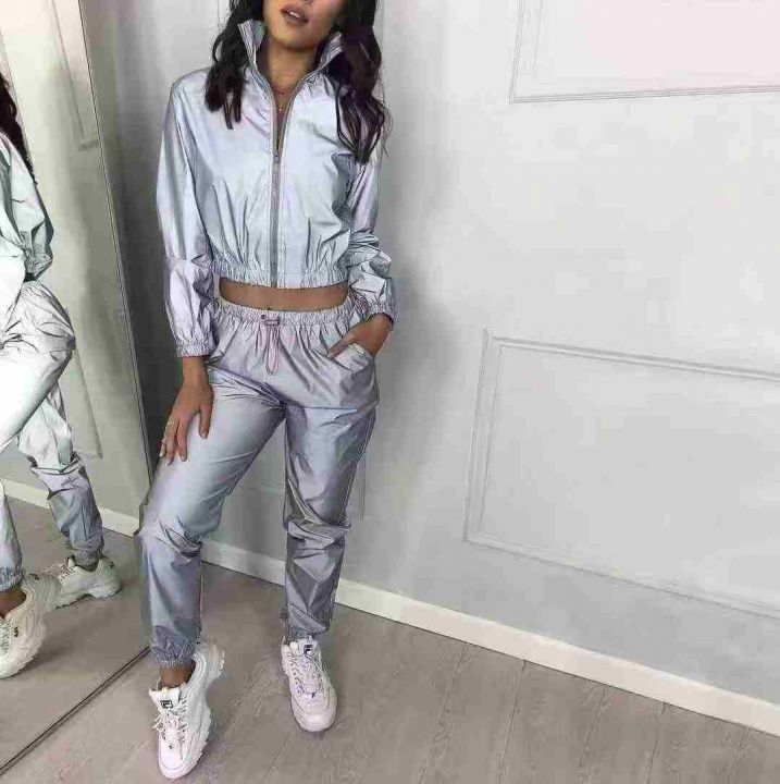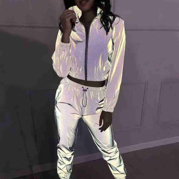 9.9清239套欧美女装套装2025秋季新款两件套亚马逊街头潮人新款反光外套长裤 码数XS- XL 独立包装