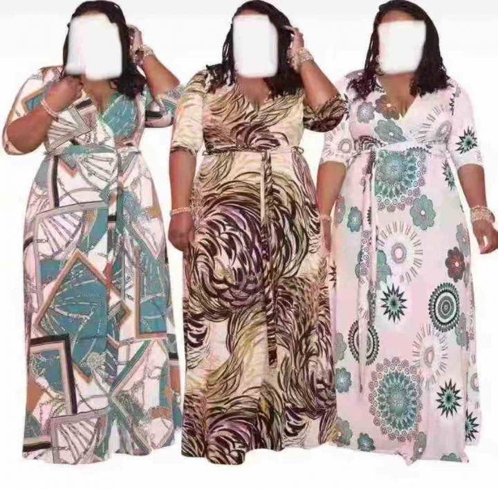 高弹力大码连衣裙大长裙系列款 颜色花型多样 S-5XL原包装 还剩1 万件左右 仓库现货.裙长1.4米到1.6米.能做的老板联系