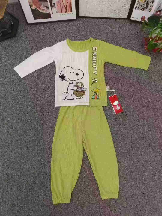 品牌童装长袖家居服套装,数量1000套左右,尺码90--150,整款单色两个品牌(史努比、baby),可分品牌出,独立包装带吊牌,货品整洁质佳