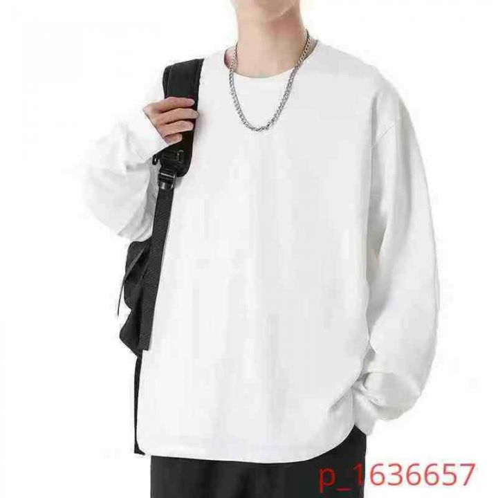 ☕️纯棉220克纯色男士长袖t恤新款春秋潮流ins宽松休...