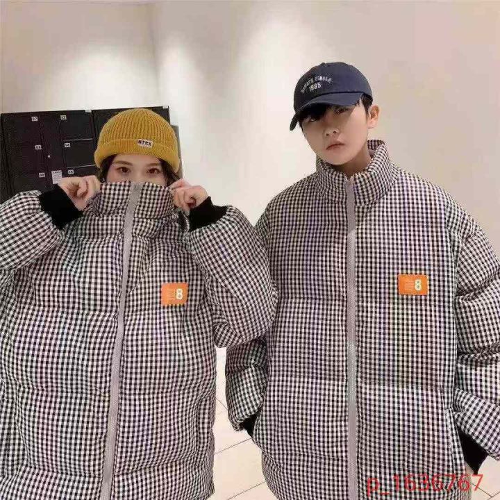 格子情侣装棉服565件18.8,胸前小标,有口袋,宽松版...