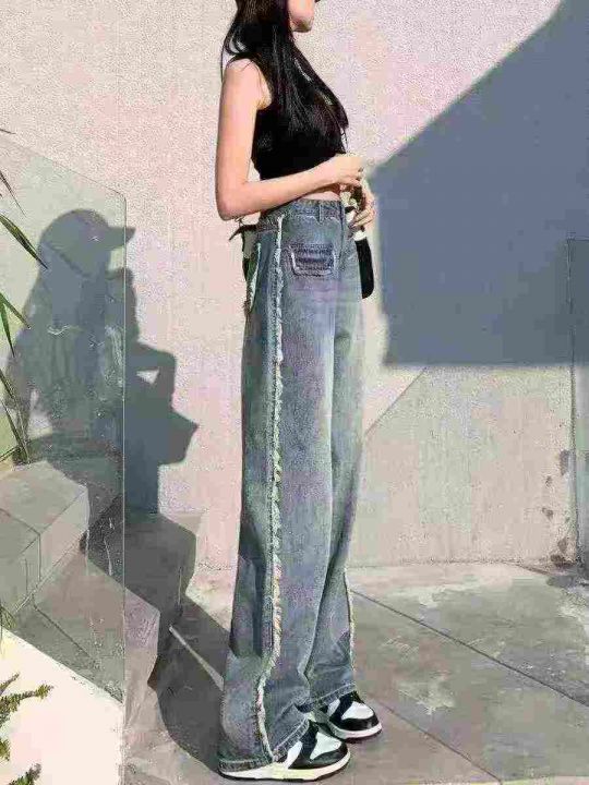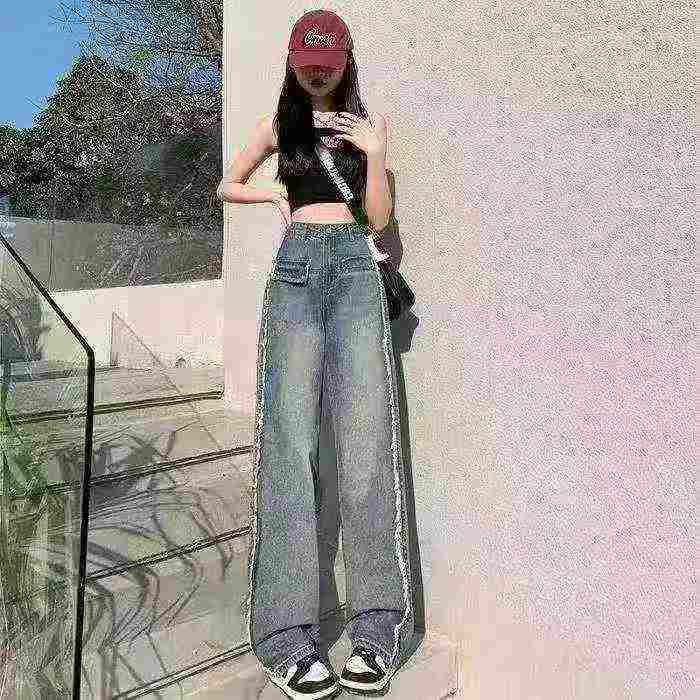 设计感毛边牛仔裤女春秋新款,高腰显瘦百搭阔腿直筒拖地裤,独立包装,数量177条,XS-2XL码,款号8318-3,m码裤长110CM