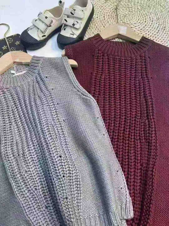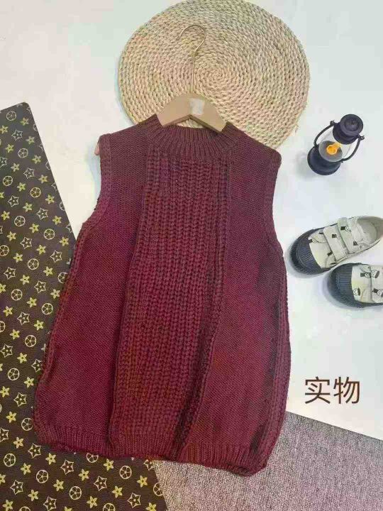 童装毛衣马甲,男女童同款,数量 100 件左右,码数 5-13 码(4-12 岁)整首齐码,单款 2 色,此款是粗针的厚款,版型立体,款式百搭,这个季节配上衬衣穿简直不要太飒,实体店货,独立包装吊牌,网络图供参考大概款式